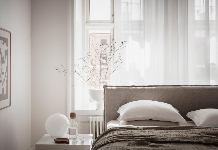 Muted colours are easier on the eye and form the perfect backdrop for the rest of the decor. For an extra cocooning feeling consider keeping the walls, curtains and bedding in the same colour family. This is something I’m considering for my bedroom as it can really make the space feel cohesive and inviting.