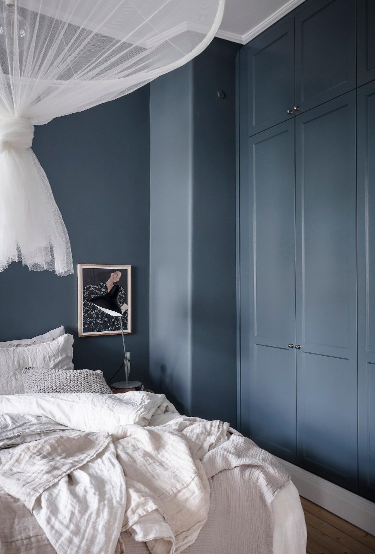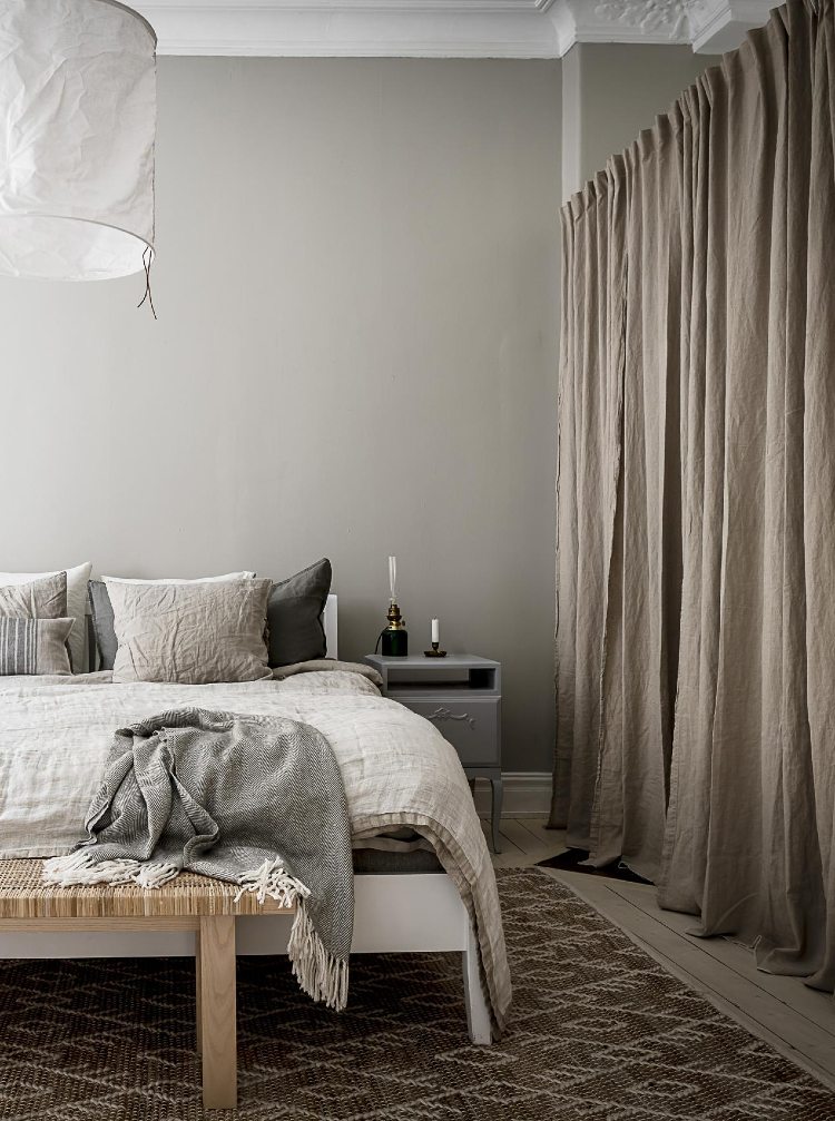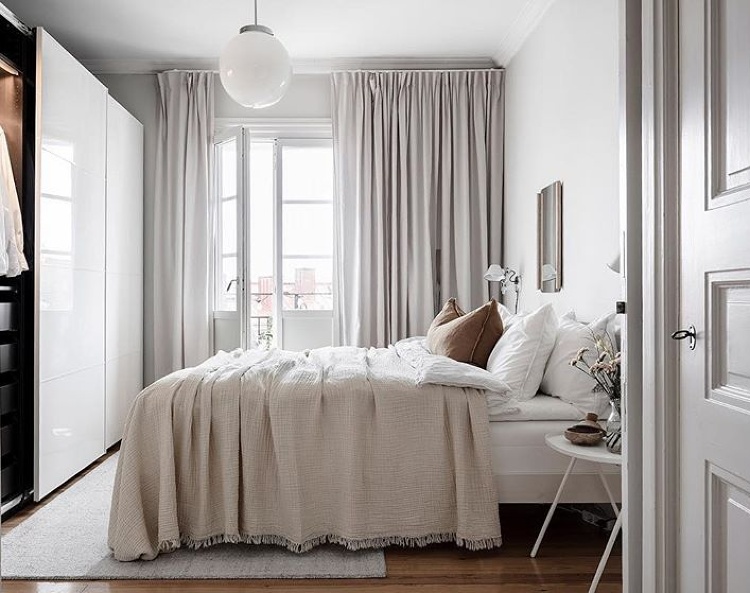 Using curtains instead of doors once again means that you don’t need much clearance space around your wardrobe. Also, in a small bedroom curtains will look less visually heavy than doors and will add plenty of texture making your room feel cosier.