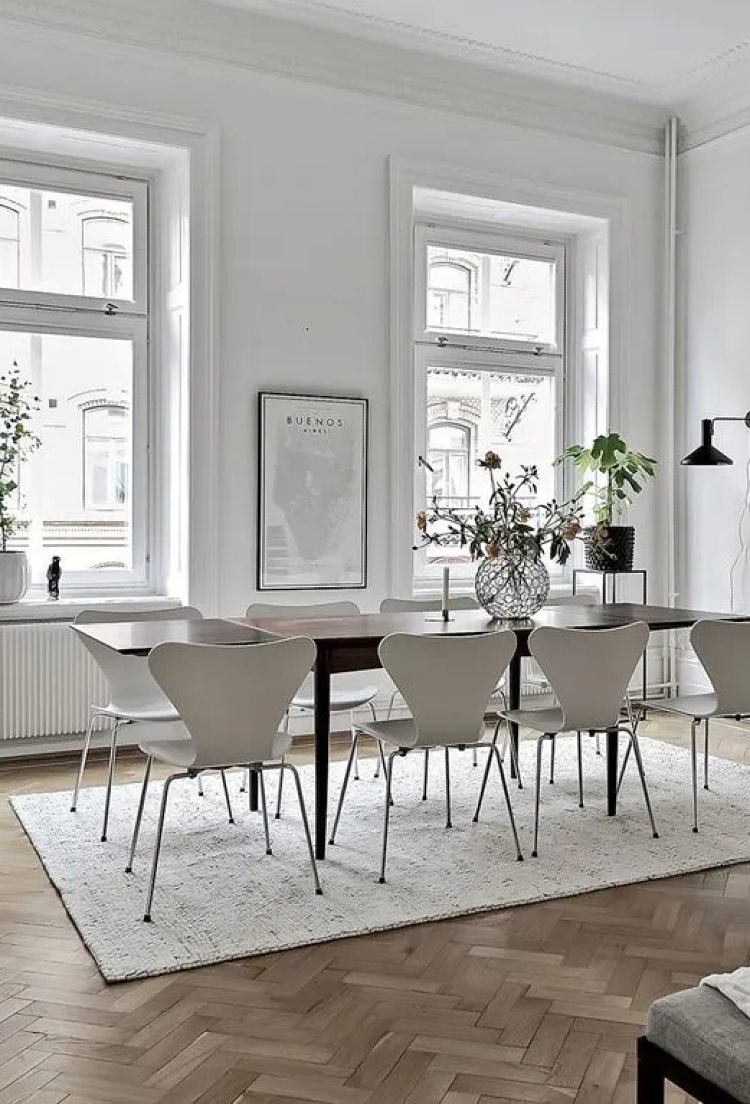 In addition to making your dining area feel more welcoming, a rug is particularly important when a dining space is part of a larger open plan living area because the rug helps to anchor the dining area and makes it feel intentional.