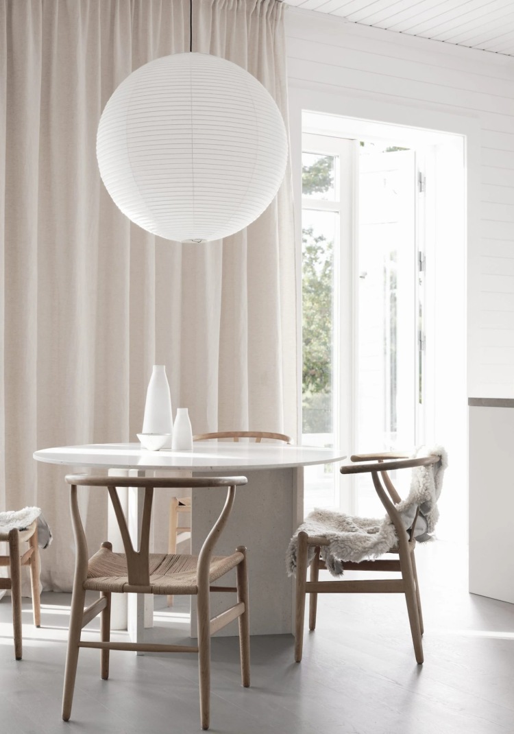 Texture comes in many forms and the way you layer in texture depends on your space and type of dining furniture. If you have windows in your dining area, adding some sheer linen curtains is a great way to add some softness to the space. If you have wooden or metal dining chairs or any chairs that are un-upholstered, draping sheepskins over the chairs will add instant warmth. I recently did this in my kitchen and just this simple addition of sheepskins on the chairs has transformed the space, making it feel so much cosier. Adding a tablecloth, table runner or a couple of marble candle holders to your dining table will also add texture.